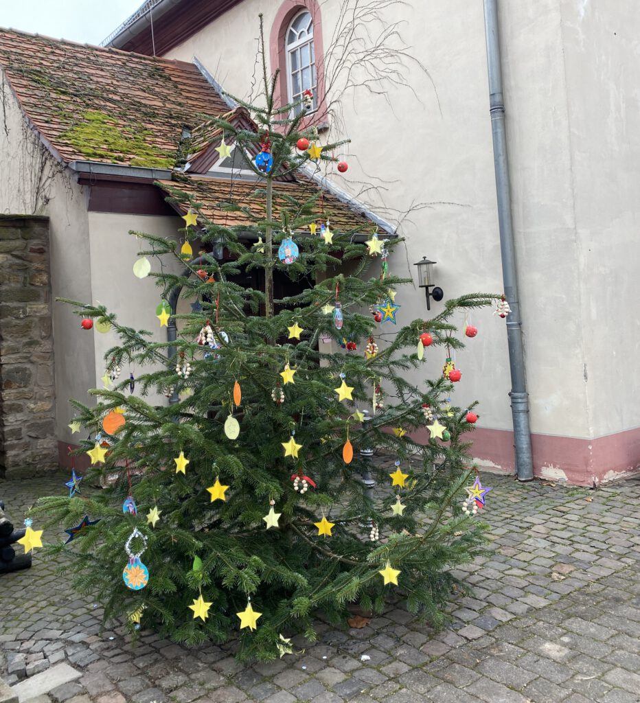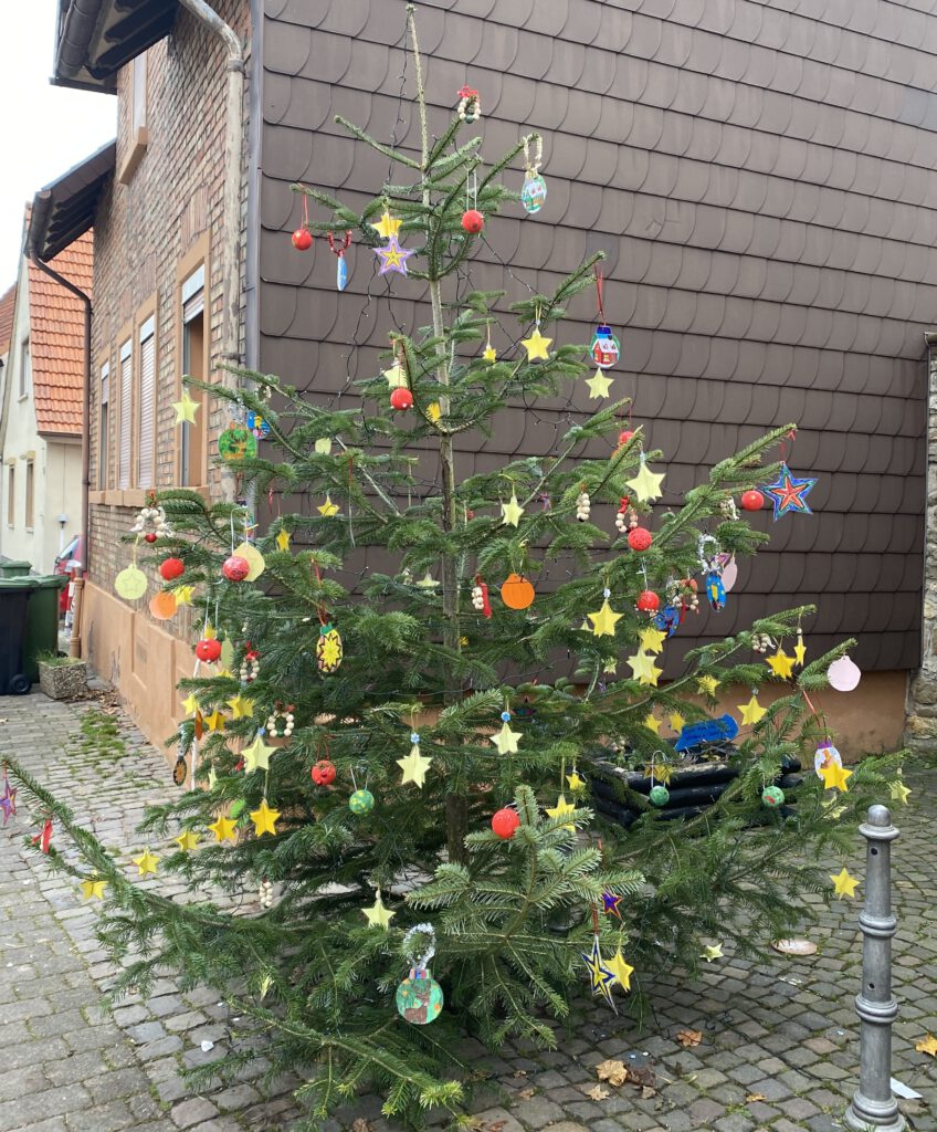 In Marnheim ging es heute fröhlich und bunt zu! Der Weihnachtsbaum, der nun vor der evangelischen Kirche steht, wurde von den kreativen Köpfen der Grundschule Marnheim geschmückt.